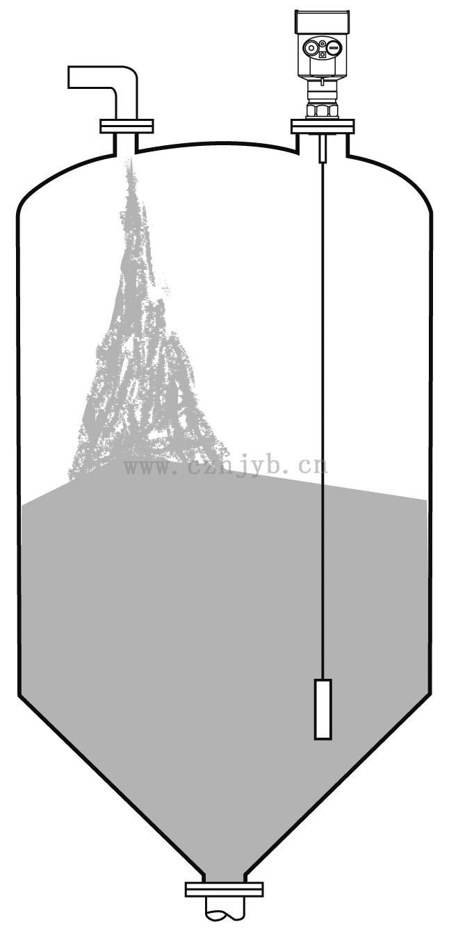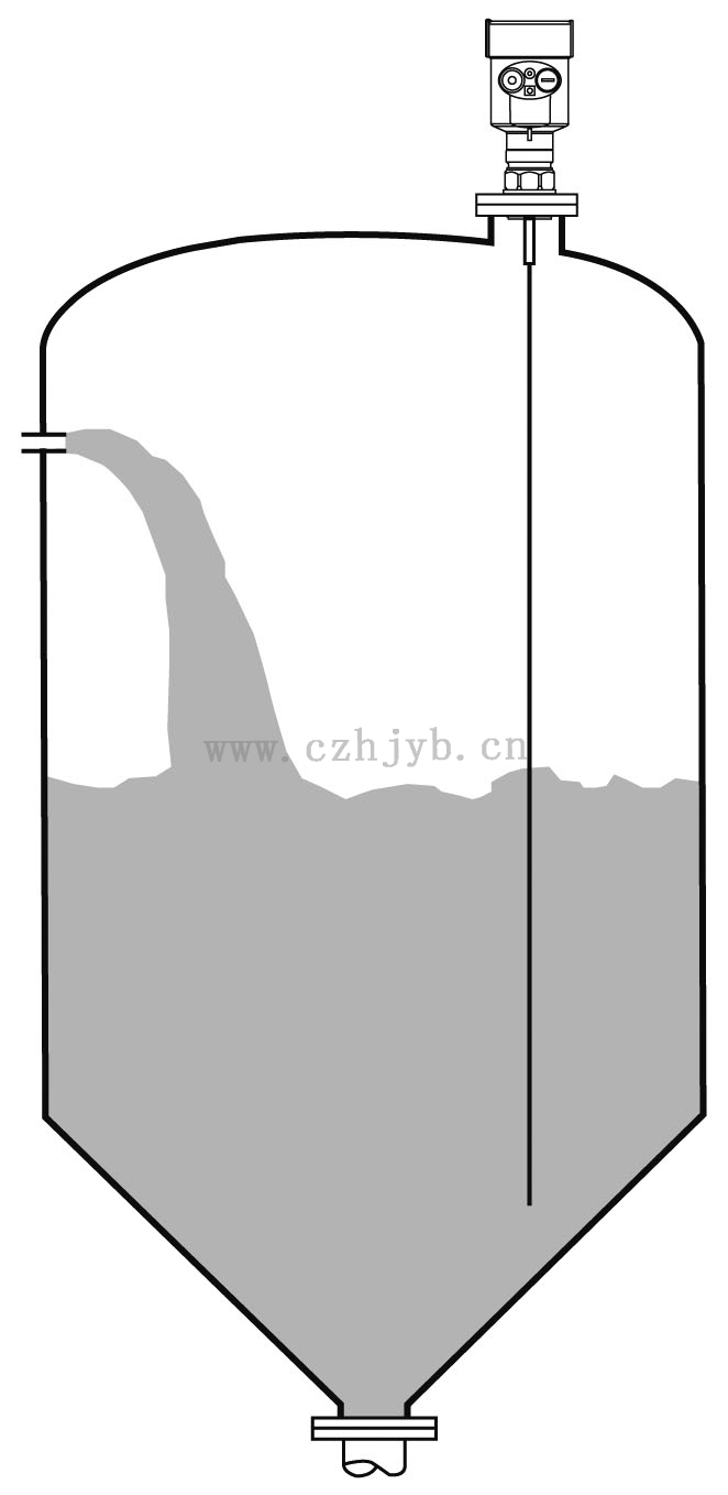 在整個量程范圍內(nèi)確定纜或棒不要接觸到內(nèi)部障礙物,因此安裝時應盡可能避開罐內(nèi)設施,如:人梯、限位開關、加熱設備、支架等。另外需注意纜或棒不得與加料料流相交。