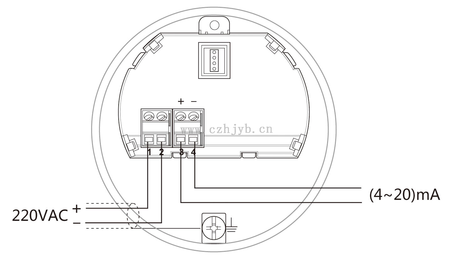 (4~20) mA/HART(四線制) 供電電纜應使用帶有專用地線的電纜線。