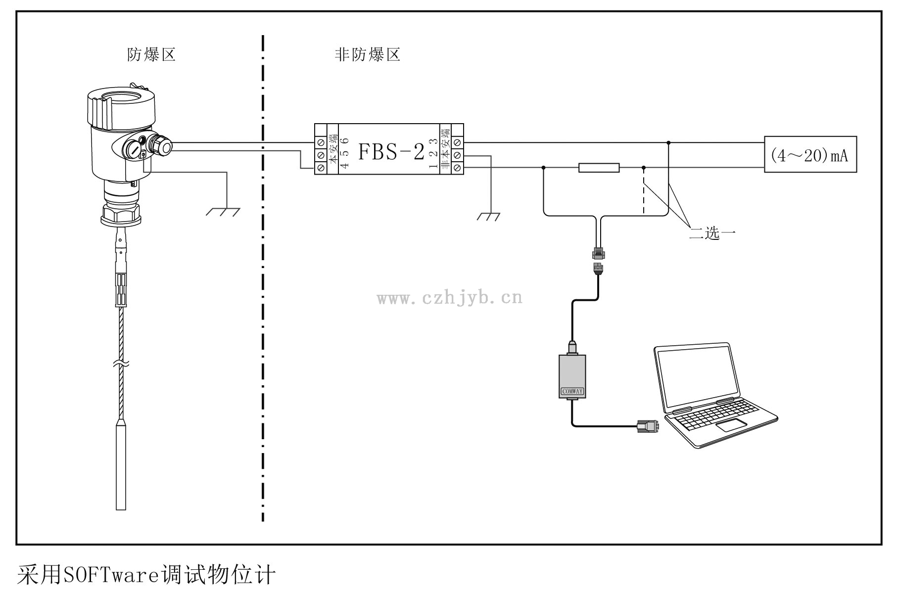 本產(chǎn)品使用時須用安全柵供電。FBS-2安全柵系本產(chǎn)品的關聯(lián)設備,防爆形式為本質安全型。防爆標志:[Exia] IIC ,供電電壓(21.6~26.4)V DC,短路電流為135mA,工作電流(4~20)mA。