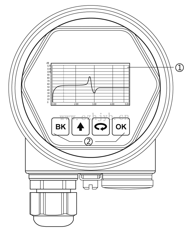 本產(chǎn)品的防爆形式為本質安全型。防爆標志:Exia IIC T6。本安型導波雷達物位計采用壓鑄鋁外殼材料,電子部件采用膠封 結構,從而確保電路部分故障時產(chǎn)生的火花不會泄放出來。本產(chǎn)品適用于Exia IIC T6 防爆等級以下可燃性介質的物位連續(xù)測量。