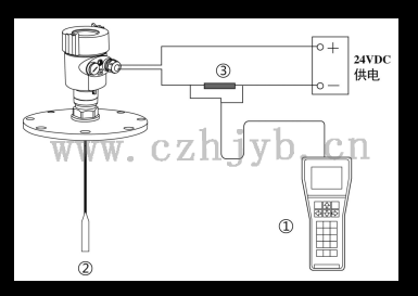 (4~20) mA/HART(兩線制) 供電電源和輸出電流信號共用一根兩芯屏蔽電纜線。具體供電電壓范圍參見技術數(shù)據(jù)。對于本安型須在供電電源與儀表之間加一個安全柵。